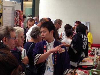 天たつが出展したのは、日本パビリオンのイベント広場で週替わりに行われる特別企画です。5月12日〜16日までの5日間、「本場の本物 世界に誇る日本の伝統食品」というテーマのもと、越前仕立て汐うにと粉うにを紹介させていただきました。