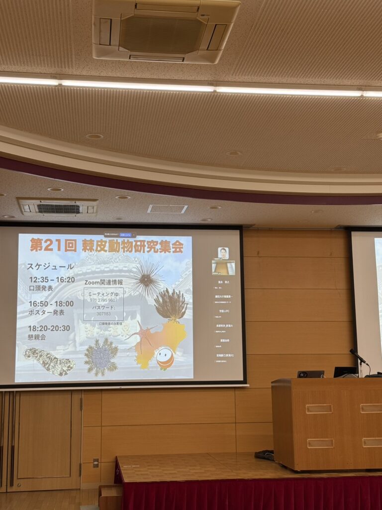 年に1度日本中の大学や研究所から棘皮動物においての研究成果を発表する場として開催をされており、私は昨年の第11回新潟大学での研究会に続いてこのたび2回目の参加となります。